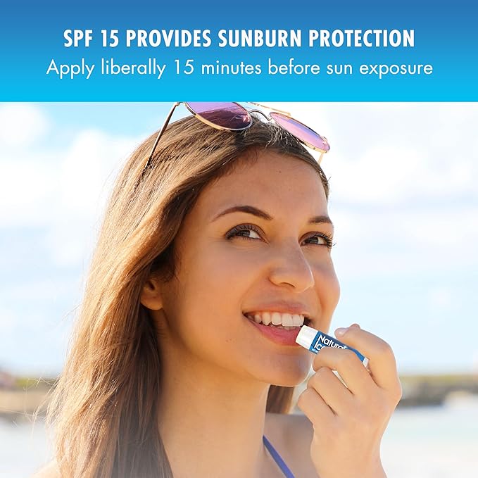 - SPF PROTECTION: Safeguard your lips from the sun's harmful rays with built-in SPF 15. Apply liberally 15 minutes before sun exposure and reapply every two hours (use as directed); Natural Ice Lip Balm is for men, women, and children over 6 months of age