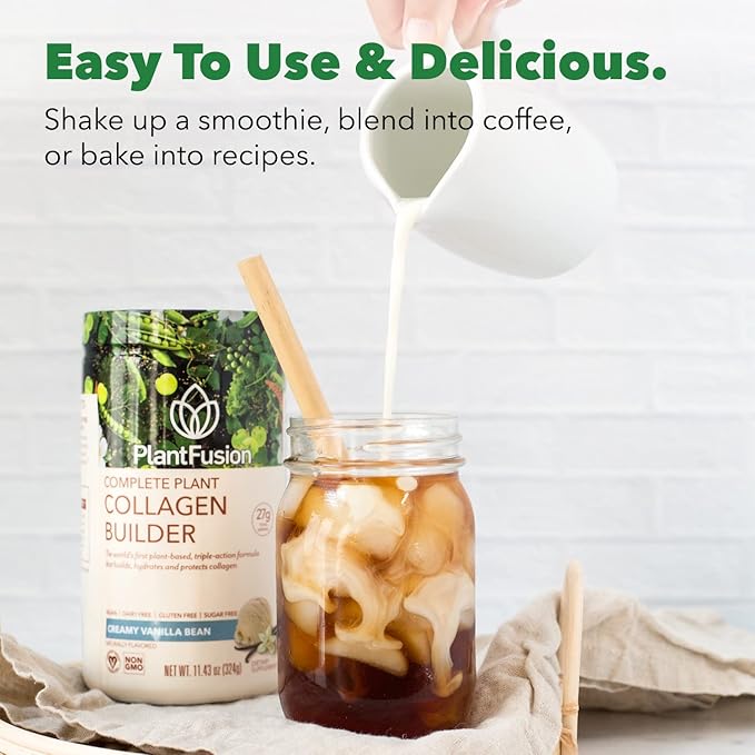 PlantFusion Vegan Collagen Powder - Plant Based Collagen Protein Powder for Muscle & Joints, Hair, Skin & Nails - Keto, Gluten Free, Soy Free, Non-Dairy, No Sugar, Non-GMO - Vanilla 11.43 oz