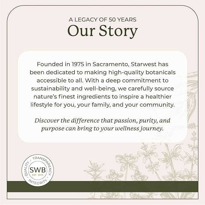 - STARWEST SUSTAINABILITY: With a commitment to responsible sourcing, Starwest Botanicals works with expert farmers across over 50 countries to provide carefully cultivated herbs, spices, and teas