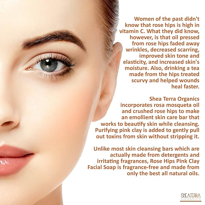 Shea Terra Organics Rose Hips & Pink Clay Facial Cleansing Soap | Anti-Aging, Anti-Acne Wonder Soap | All Skin Types - 4 oz