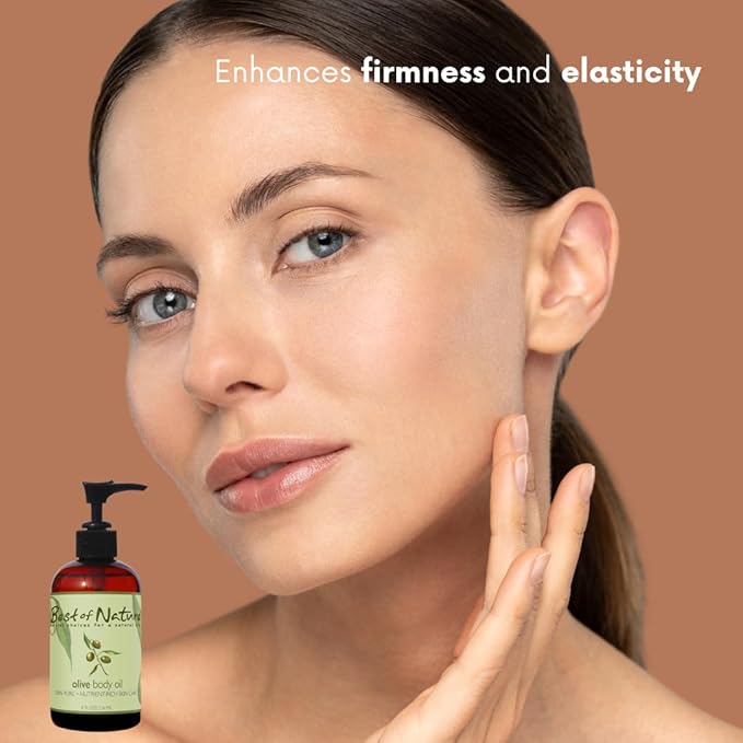 Best of Nature 100% Pure Olive Massage & Body Oil – Cold Pressed, Natural & Unscented Moisturizer for Skin, Hair & Bath, 8 fl oz