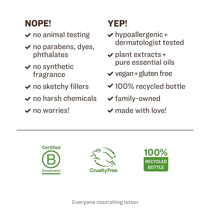 - Clean Promise: Everyone Nourishing Lotion is EWG verified, GMO free, cruelty free, gluten free, paraben free, triclosan free, and synthetic fragrance free