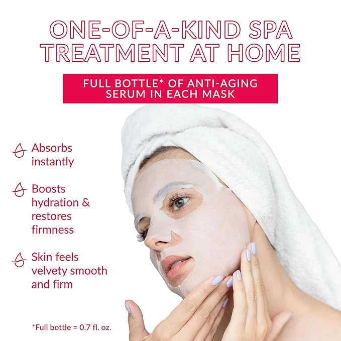 - This soft, single-use, 100% cotton mask drenches skin with a bottle of serum* to boost hydration, smooth fine lines, and restore firmness and bounce to your skin