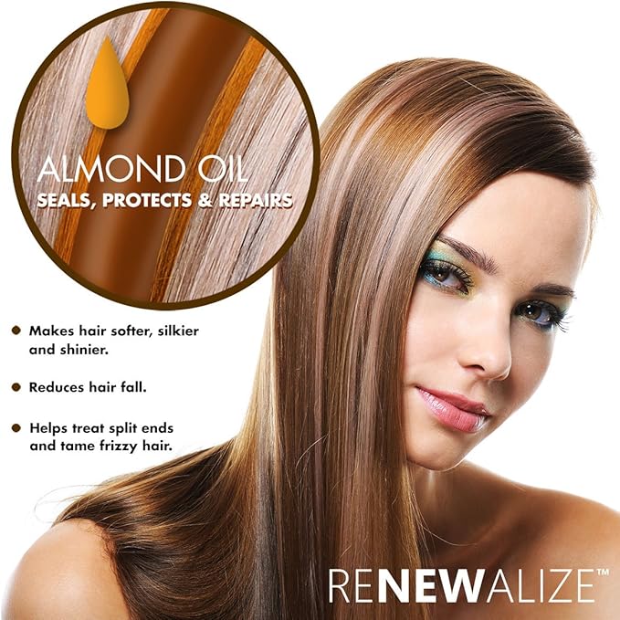 - HAIRCARE: Naturally occurring vitamins A, B and E inside almond oil helps to keep hair strong and healthy, preventing against breakage. Split ends are caused by the hair's loss of moisture. Almond oil helps to coat the hair strands to help seal in moisture for longer periods of time. Hydrating the scalp with sweet almond oil may help to prevent dandruff, while also, for some, stimulating hair growth and reduce hair loss.
