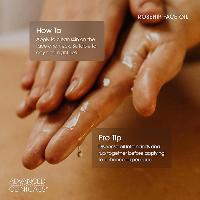 Advanced Clinicals Rosehip Oil For Face With Vitamin E + Botanicals Helps Improve Look Of Dark Spots, Wrinkles, Fine Lines, & Uneven Looking Skin Tone | Moisturizing Skin Care Face Serum, 1.8 Fl Oz
