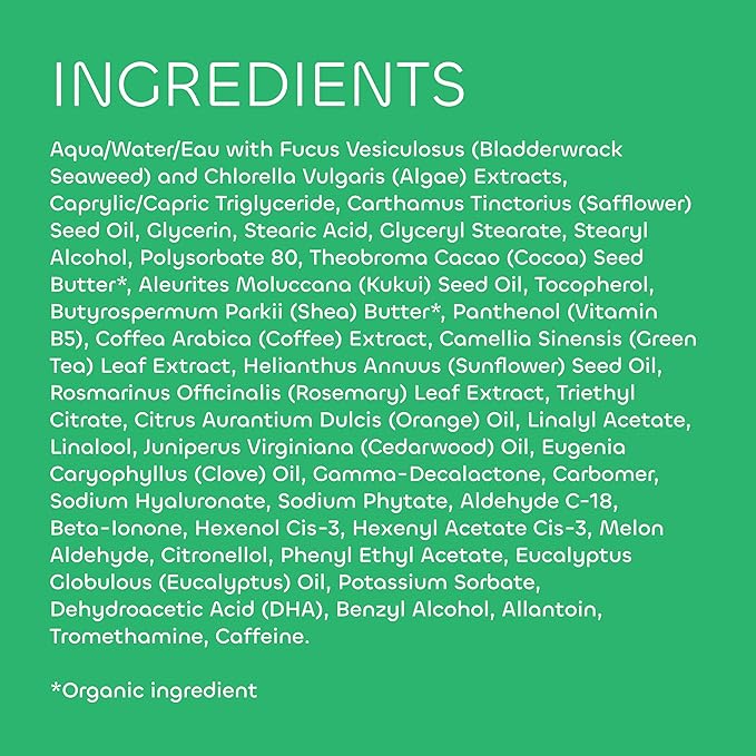 - Summon the feeling of a restorative ocean swim; This toning formula is infused with nutrient-dense chlorella and green coffee bean extract to boost moisture and deliver antioxidants for smoother, firmer-looking skin