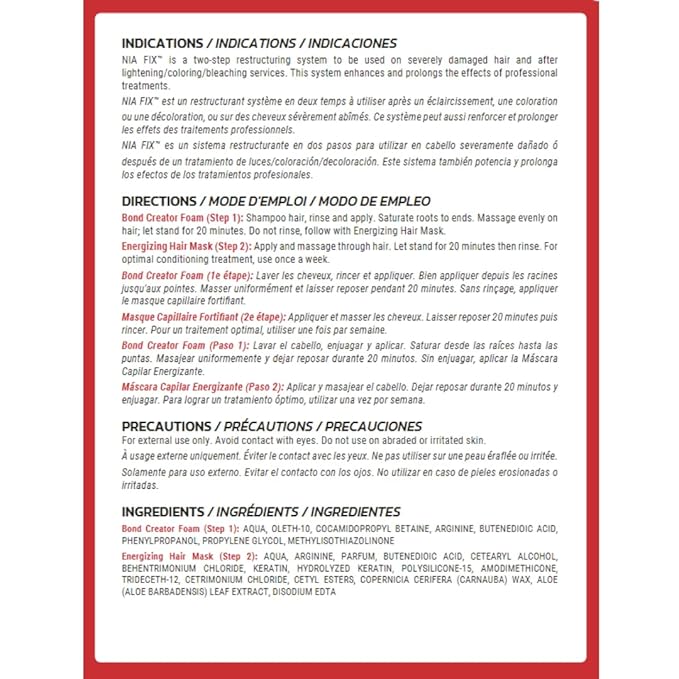 - Hair Bond Repair Treatment: Nia Fix is a revolutionary bond-restructuring and advanced cuticle-restoring treatment that transforms damaged or treated hair into softer, stronger, healthier, more vibrant looking hair. It physically repairs bonds and cuticles from the inside out thanks to its two-step treatment.