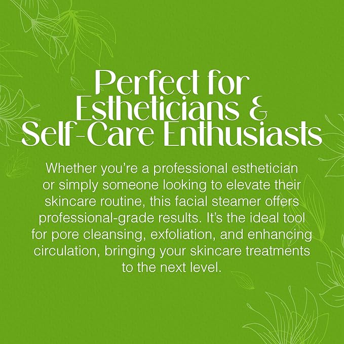- No Distraction Beauty Sessions - Experience seamless timing with our esthetician steamer with silent digital timer. No clicking, dings, or beeps to disrupt your flow. Truly a steamer for esthetician crafted for focused and uninterrupted sessions.