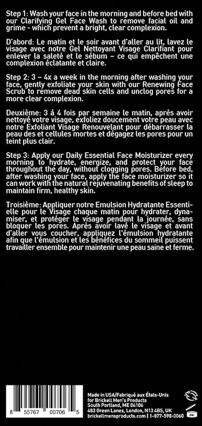 Brickell Men's Products Daily Advanced Face Care Routine I, Gel Facial Cleanser Wash, Face Scrub, Face Moisturizer Lotion, Natural and Organic Men's Skin Care Gift Set, Scented