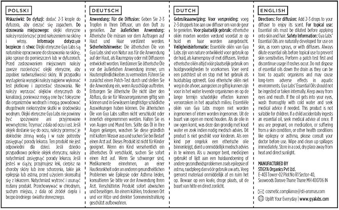 - EXPERTLY BOTTLED & PACKAGED. Gya Labs Essential Oils are crafted with the finest botanicals. Our oils are carefully handled to deliver a premium experience for you to enjoy.