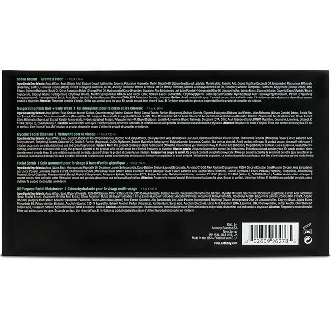 Anthony Starter Kit, 5 Count, Glycolic Facial Cleanser, Facial Scrub, All Purpose Facial Moisturizer, Invigorating Rush Hair & Body Wash, Shave Cream