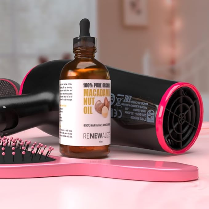 Organic Macadamia Nut Oil Moisturizer for Dry Skin In Large 4oz Glass Bottle | Cold Pressed and Unrefined Hair Oil