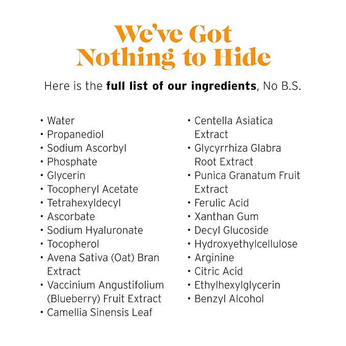 - DEFEND AGAINST PREMATURE AGING: Safeguard your skin from aging free radicals! Our serum is enriched with potent antioxidants, including Pomegranate and Green Tea, known to help maintain youthful skin. Experience the benefits of ingredients that support your skin's natural defense against premature aging. Plus, it works seamlessly under makeup, providing a smooth base for your daily routine.