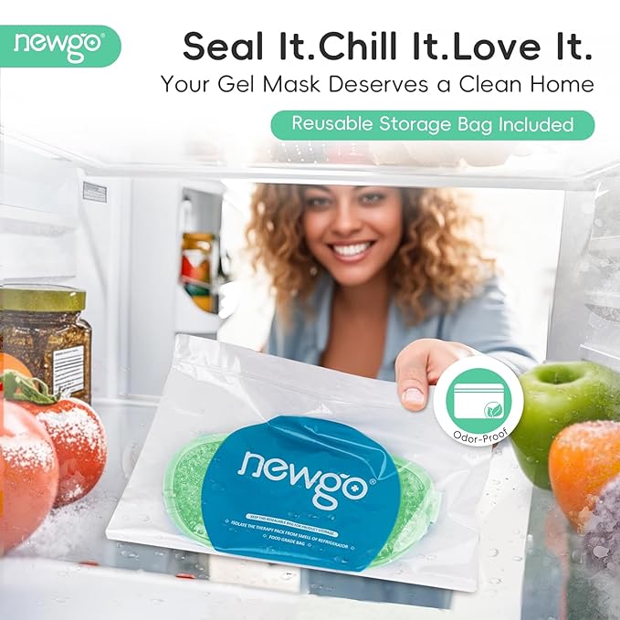 - Soothing Relief for Eyes & Headaches - NEWGO cooling eye mask is a versatile eye mask that offers effective relief for puffy eyes, headaches, dry eyes, dark circles, swelling around the eyes, post-surgery recovery.The eye ice pack a good option for those looking for a convenient and portable solution for eye care, or relaxation especially after a long day or when dealing with eye strain.