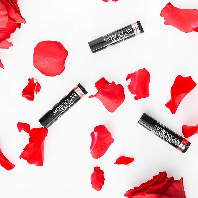 Moroccan Magic Organic Rose Lip Balm 3 Pack | Chapsticks for Dry Lips | Natural Argan & Essential Oils Lip Moisturizer + Vitamin E | Smooth, Hydrating, Non-Toxic | Organic Lip Balm Set