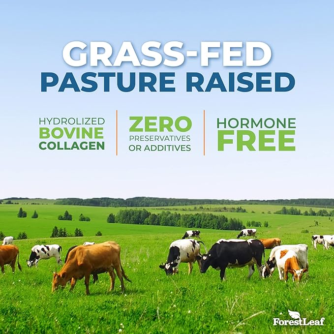 - Pasture Raised Grass Fed Collagen Powder - Forest Leaf advanced collagen is 100% grassfed collagen from naturally grazing, pasture raised livestock and is unflavored with zero artificial additives or flavors including sugar, gluten, dairy, nuts, soy, fish, egg, and hormones.