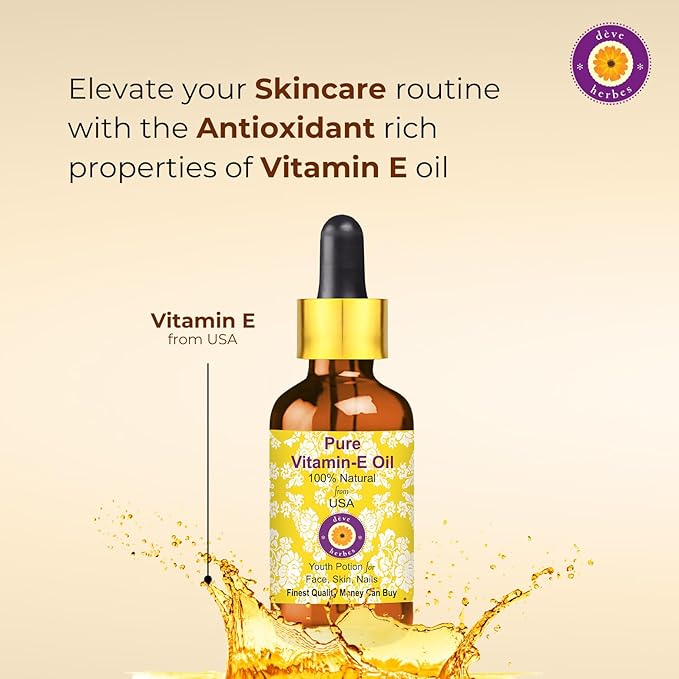 Dev Herbes Top Ratings Natural Therapeutic Grade Cold Pressed Oils (Vitamin E (30ml), 30ml (1.01 Ounce) with Plastic Euro Dropper)