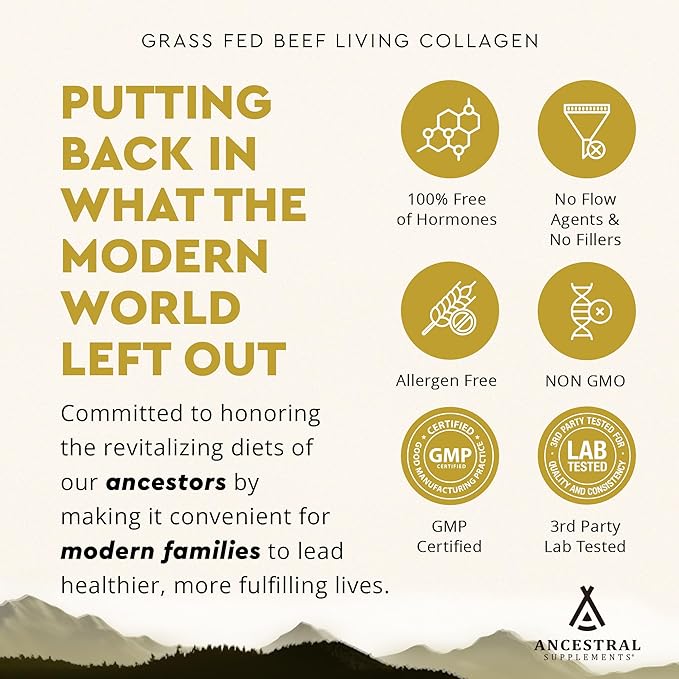 - LIVING COLLAGEN: Ancestral Supplements’ collagen supplement for men and women is derived exclusively from grass fed beef cartilage; And it’s never heat treated, leaving it remarkably vibrant and packed with the nutrition nature intended - that’s why we call it Living Collagen.