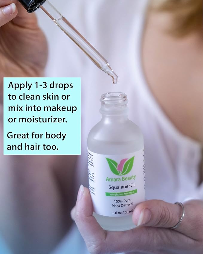 Amara Beauty Squalane Oil Moisturizer with 100% Pure Plant Derived Squalane for Face, Body, Skin and Hair - Face Oil 2 fl. oz.
