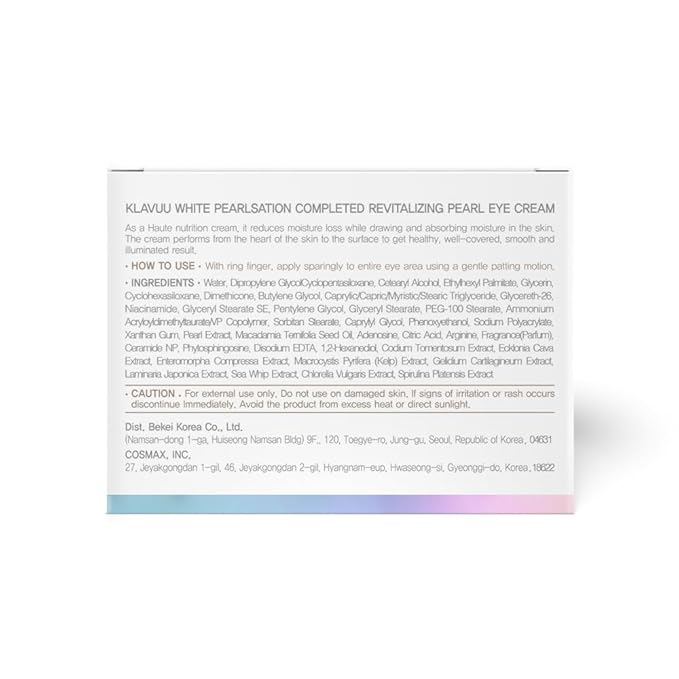 KLAVUU PEARLSATION Enriched Pearl Eye Cream – Face Moisturizer, Niacinamide, Enhances Skin Elasticity, Dark Circles Under Eye Treatment with Anti-Aging Hydration, Korean Skin Care (0.68oz/20ml)