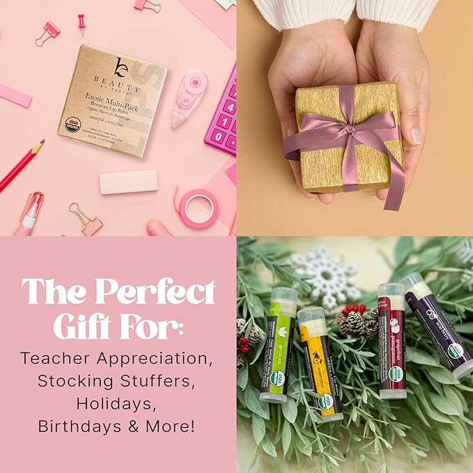 • PERFECT GIFT FOR ANY OCCASION: This organic lip balm set makes ๐ข๐๐ž๐š๐ฅ ๐ฌ๐ญ๐จ๐œ๐ค๐ข๐ง๐  ๐ฌ๐ญ๐ฎ๐Ÿ๐Ÿ๐ž๐ซ๐ฌ for wife, small stocking stuffers for women, or stocking stuffers for teen girls. Beautifully packaged and suitable for all, itโ€™s a thoughtful and practical cute stocking stuffer for women and all natural gifts for women.