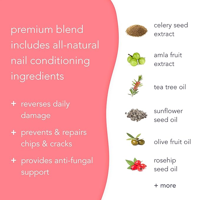 - NATURALLY MOISTURIZING: With each drop, your nails drink in a blend of more than a dozen natural moisturizing ingredients, including Sunflower Seed Oil, Olive Fruit Oil, Rosehip Seed Oil, Castor Seed Oil, Vitamin E & Amla Extract to restore nails and hydrate cuticles while Tea Tree Oil offers anti-fungal properties for improved overall nail health.