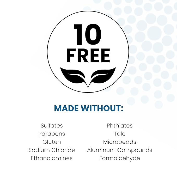 - Clean & Gentle Formula: Free from harsh ingredients such as sulfates, parabens, gluten, sodium chloride, ethanolamines, phthalates, talc, microbeads, aluminum compounds, and formaldehyde.
