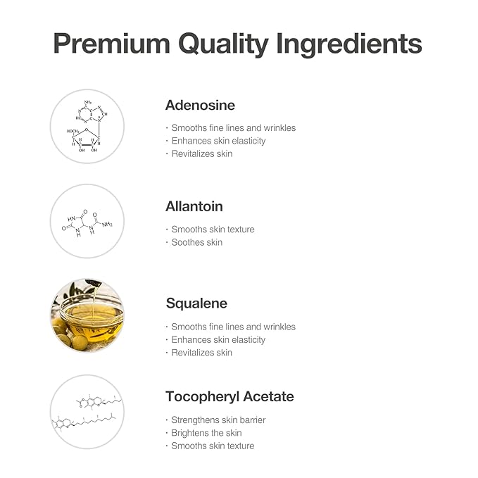 - MOISTURIZES, RESTORES, & FIRMS: Combines adenosine, allantoin, niacinamide, and burnet extract to visibly smooth and firm the skin. Hydrolyzed collagen supports collagen production, while super bio-hyaluronic acid plumps and refreshes tired eyes.