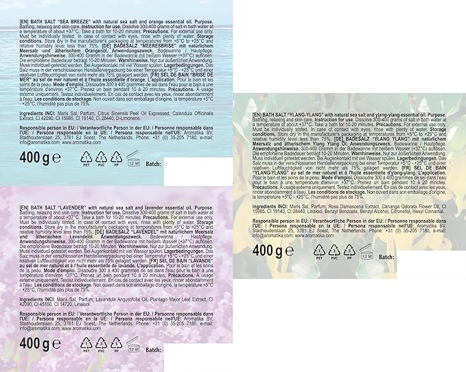 Bath Salts Set 42 Oz - Lavender - Sea Breeze - Ylang-Ylang - 100% Natural Essential Oil - Bathing - Body Care - Beauty - Relaxation - Spa