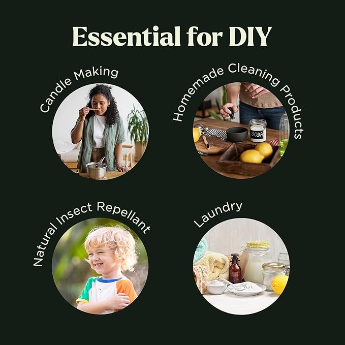 • Stimulating tea tree essential oil: Refresh your home, office, or car our tea tree oil. It’s pure and ideal for candle making scents, DIY soaps, cleaning products or detergents or aromatherapy experiences.
