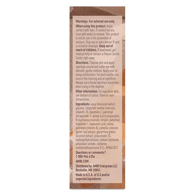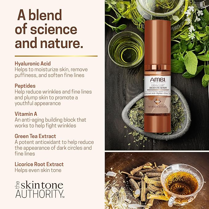 Ambi Even & Clear Under Eye Serum for All Skin Types; Anti Aging Formula features Peptides, Hyaluronic Acid, and Vitamin A to help Reduce Fine Lines, Wrinkles, and Dark Circles , 0.5 Ounce