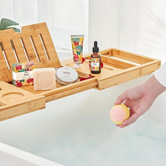 - Natural Bath Spa Gift Set: Our spa gift sets are made with natural ingredients and never tested on animal; They are scented with pure rose essential oils and Vitamin E to rejuvenate and relax while smoothing and moisturizing skin
