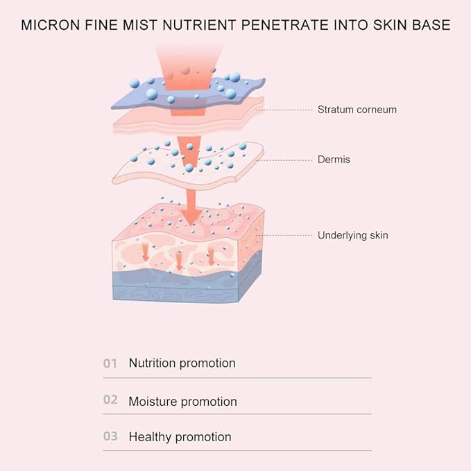 - TIPS: Moisturizing before makeup and can be used for makeup setting. It can evenly cover the face, quickly penetrate the pores to the bottom of the skin, and promote fast absorption of nutrients. Can add liquid: mineral water, essential oil, aromatherapy fluid, milk, toner.(suggestion: test before adding, so as not to block the atomizer.)
