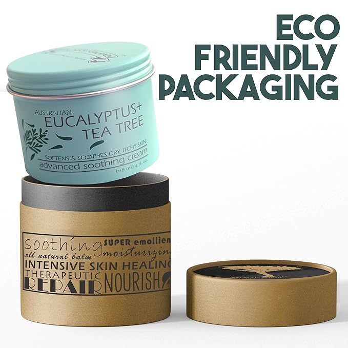 • ๐ŸŒฟ Soothing and calming moisture: Foot cream infused with peppermint, Australian eucalyptus & tea tree oils. It's your go-to relief for feet and hands, perfect for addressing skin irritations, dry, itchy skin, and even athletes feet with its antifungal itch relief. Dive into intensive moisture with this fast acting tea tree cream / tea tree balm!