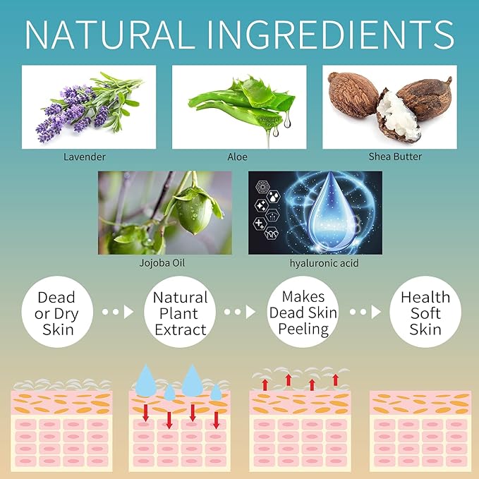 - 5 Pack lavender and aloe foot peel mask comprises of all-natural ingredients and botanical extracts that are safe to use on both men and woman.there is zero pain in this process of renewing the skin on your feet. no salicylic acid used