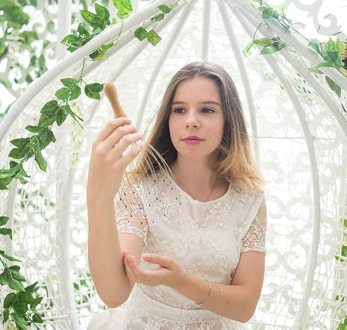 USAGA 28 Finger Head Scratcher, Head Massager, Scalp Massager for Scalp Body Relaxing Wood Handle (1 Pack)