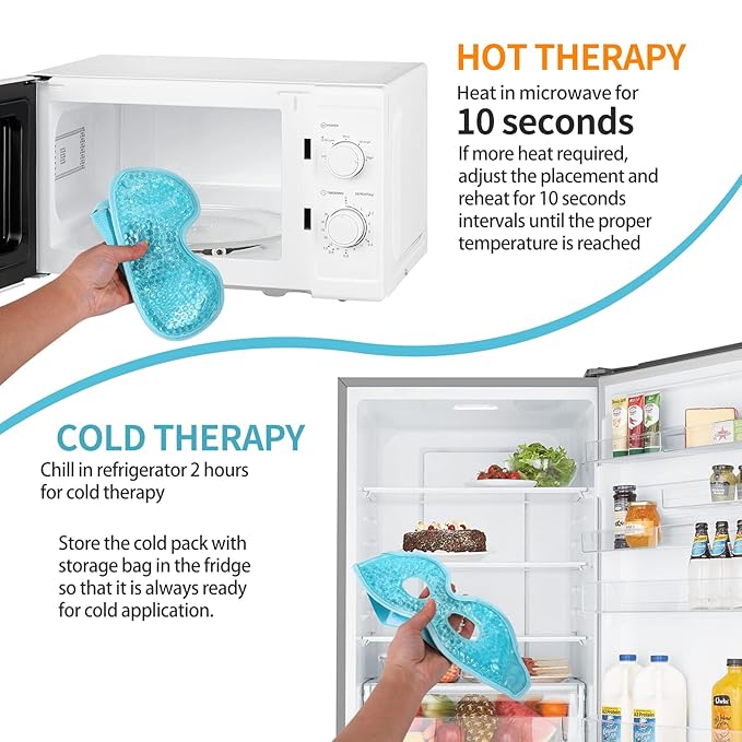 - HOW TO USE - Just chill in refrigerator 2 hours for cold therapy, After the mask has reached the desired temperature, simply apply to the face. (Do not put in the freezer for more than 2 hours, No time limit on the refrigerator). For hot use just place eye mask in microwave oven for 10 second.