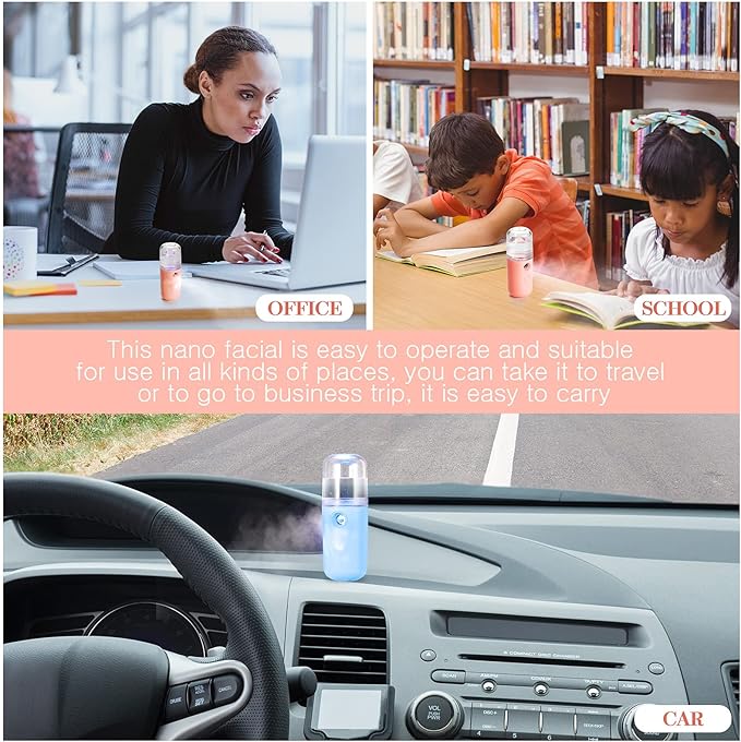 - Operate easily: this portable mini face humidifier is easy to operate, when you need to use it, just fill it with mineral water, and then press the switch, it will automatically emit a soothing cool feeling, USB charging is also easy to use, satisfying your daily needs; Please be careful not to use it while charging to prevent potential safety hazards; It can be applied after about 1 hour of normal charging