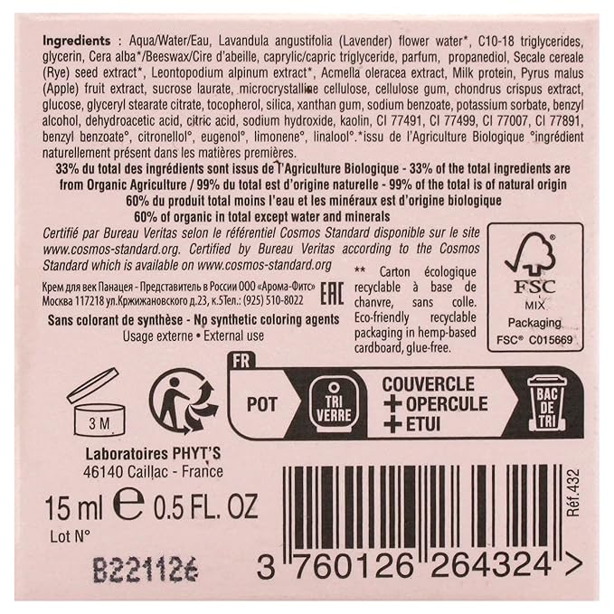 Phyts Panacea Eye Contour - Eye Cream for Radiance and Anti-Aging - Cream for Wrinkles, Sagging, Fatigue and Dehydration Around Eyes - 0.5 oz