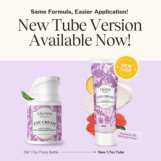 LilyAna Naturals Eye Cream for Dark Circles and Puffiness, Anti Aging Under Eye Cream for Wrinkles and Bags helps Improve Dryness; for Sensitive Skin (Bottle, 1.0 Ounce (Pack of 1))