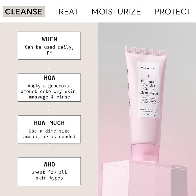 Naturium Camellia Creamy Cleansing Oil, Fermented Camellia Oil & Extract Plus Linoleic-Rich Oils, 3.5 oz