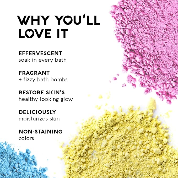 - Playful Escape: Fizzing bath bombs transform your tub into a vibrant, rainbow-filled soak