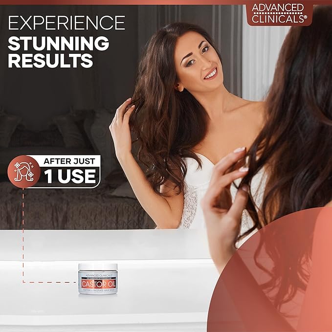- Never Too Late – Healthy hair is still possible. Restore your hair’s softness, strength, and shine with Advanced Clinicals’ Castor Oil Soften + Hydrate Hair Mask, formulated with vegan ingredients!