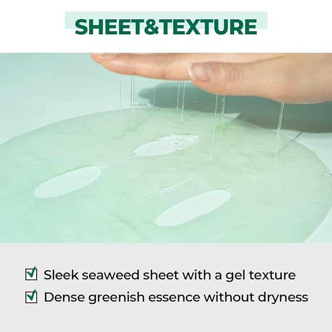 - [SEAWEED GEL SHEET] The seaweed sheet transforms into a sleek gel texture upon contact with moisture, delivering a thick essence that makes your skin shine and glow.