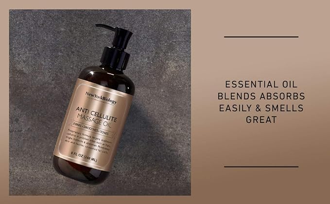 New York Biology Anti Cellulite Massage Oil 8 Fl Oz – Made with 100% Natural Oils – Body Oil for Massage Therapy, Muscle Relaxation and Deep Tissue - Pack of 2