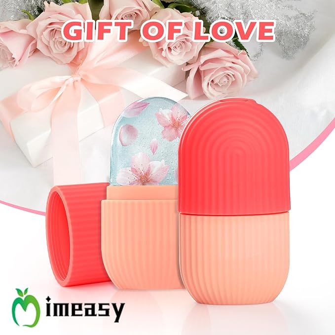 Ice Roller for Face and Eye, Upgrated Ice Face Roller Puffiness Relief Ice Roller Skin Care Tools, Ice Facial Cube,Self Care Gift for Men Women, Silicone Ice Mold for Face Beauty (Red)