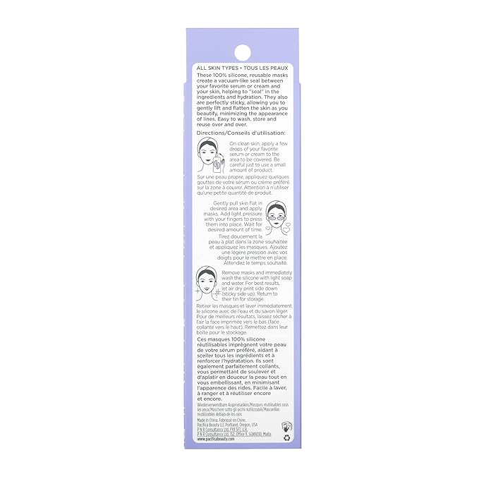 Pacifica Reusable Mask – Under Eye Mask Silicone Face Mask for Fine Lines & Dark Circles, Pair with Serum, Storage Tin Included, Vegan & Cruelty-Free, 2 Pieces