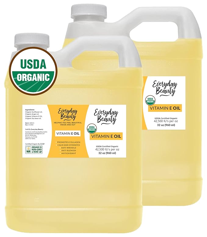 Organic Vitamin E Oil - 64 oz Bulk USDA Certified 100% All Natural & Plant Based - Light and Unscented Great for Scars After Surgery - For Face, Skin, Hair and Nails - Anti-Wrinkle, Anti-Aging