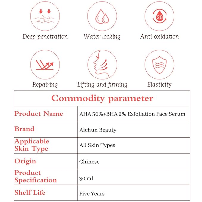 AICHUN BEAUTY Face Serum Eye Essence Anti-Wrinkles Anti-Acne Oil-Control Anti-Freckle Refreshing Moisturizing Purifying Shrink Pores 30ml 1.01FL.oz (AHA 30% + BHA 2% Exfoliation Face Serum)
