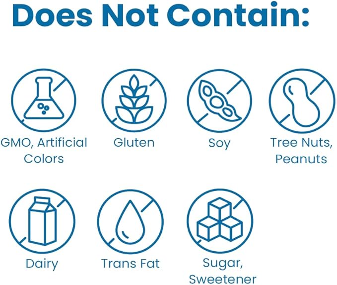 - THIS SUPPLEMENT EXCLUDES: GMO, Artificial Colors, Gluten, Soy, Egg, Dairy, Trans Fat, Sugar, Sweeteners, Tree Nuts, and Peanuts.